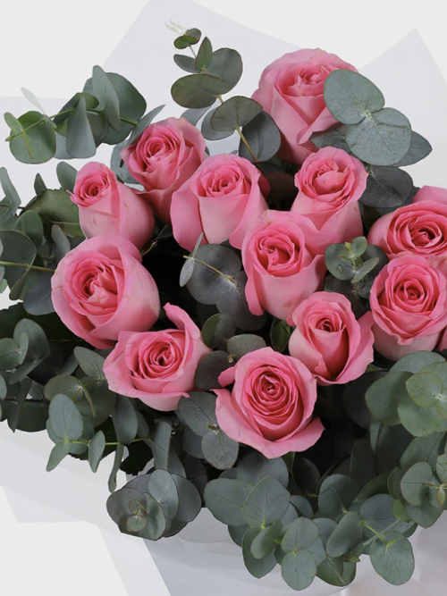 Ramo 12 Rosas Ecuatorianas Rosadas + Follaje  × 1